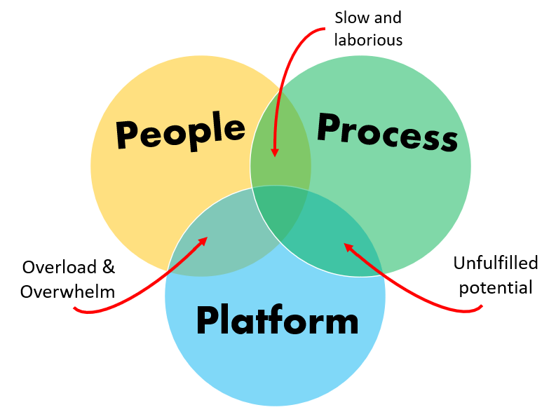 The focus today is on platform capability, which is often wasted when there aren’t people, process and direction supporting success.